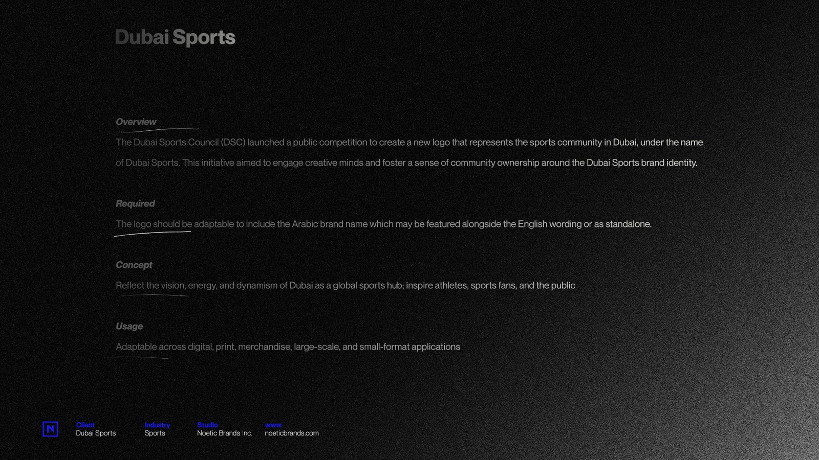 The result is a timeless, bilingual mark that serves as a “Creative Extension” of Dubai’s sporting vision—built for high-performance application across all digital and physical touchpoints.
