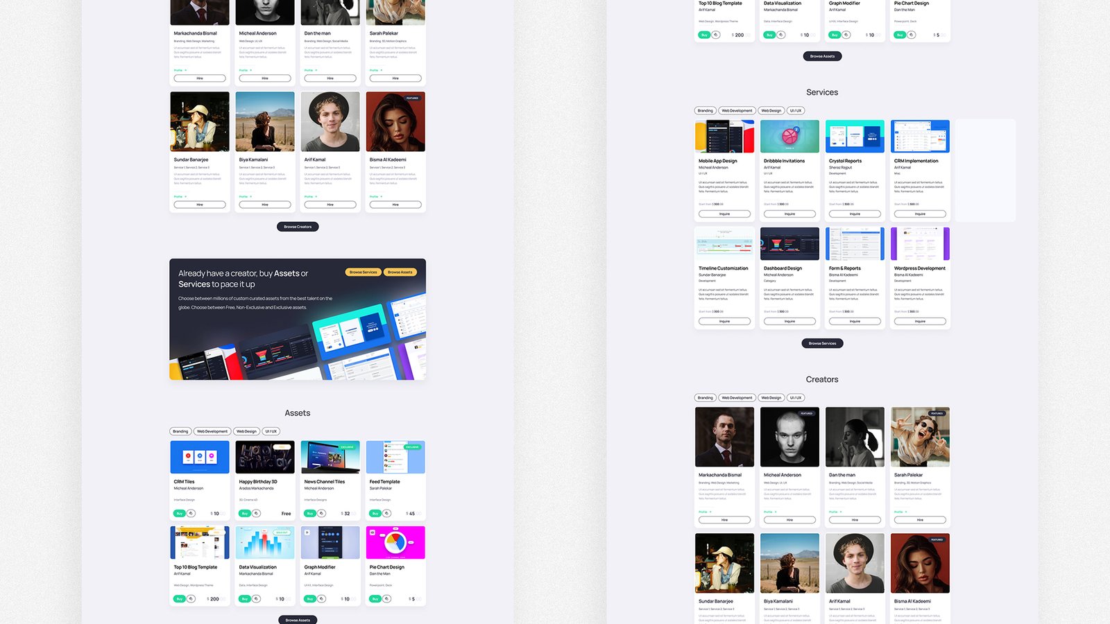 User research showed buyers wanted quick discovery, transparent pricing, and reliable delivery; creators wanted fair exposure, flexible monetization (assets + services), and easy account management. Those findings shaped the marketplace taxonomy, search, and buyer/creator flows.
